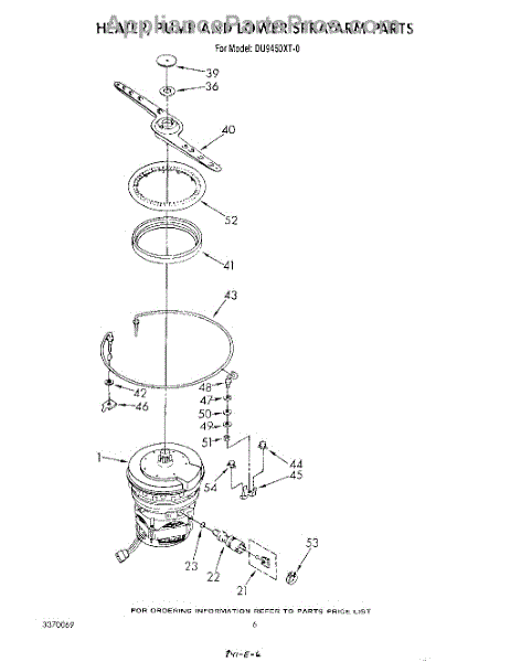 Parts for Whirlpool DU9450XT0: 04 - Heater, Pump And Lower Spray Arm Parts