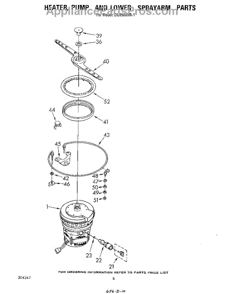 Parts for Whirlpool DU9500XR1: 04 - Heater, Pump And Lower Sprayarm Parts