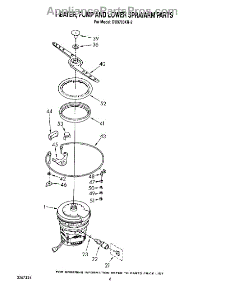 Parts for Whirlpool DU9700XR2: 04 - Heater, Pump And Lower Spray Arm Parts