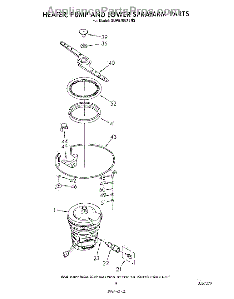 Parts for Whirlpool GDP8700XTN3: 06 - Heater, Pump And Lower Spray Arm Parts