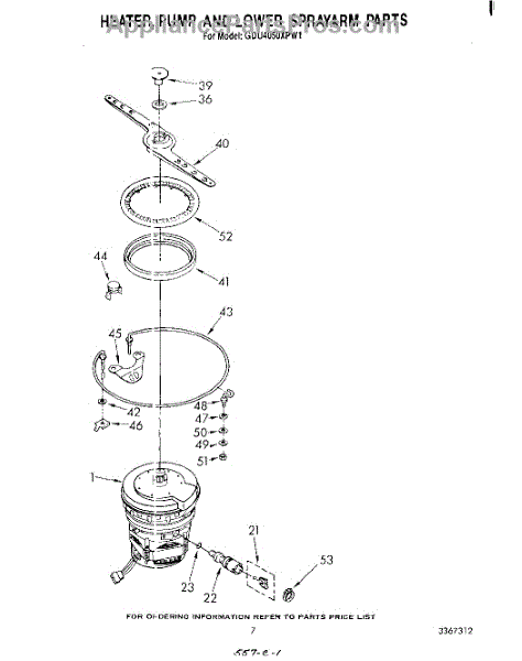 Parts for Whirlpool GDU4050XPW1: 05 - Heater, Pump And Lower Sprayarm Parts