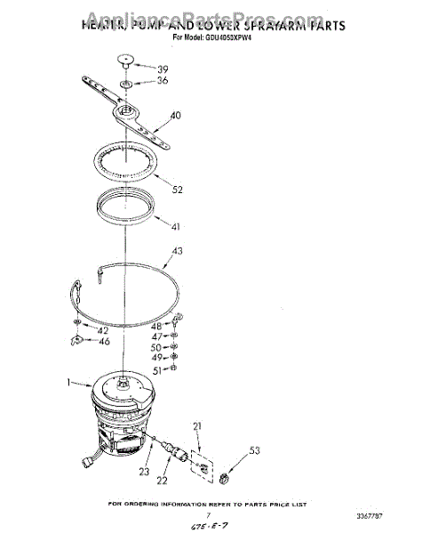 Parts for Whirlpool GDU4050XPW4: 05 - Heater, Pump And Lower Spray Arm Parts