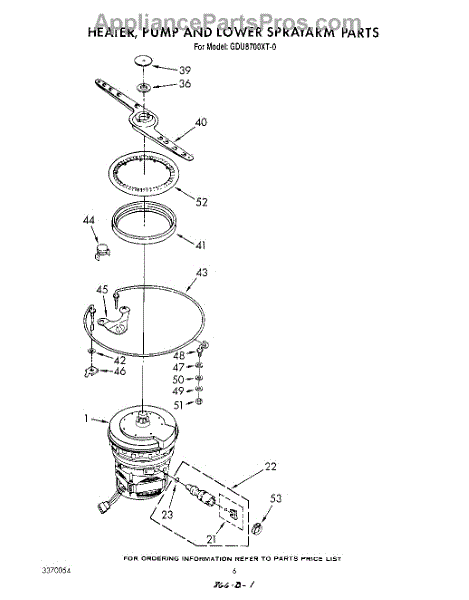 Parts for Whirlpool GDU8700XT0: 04 - Heater, Pump, And Lower Sprayarm Parts