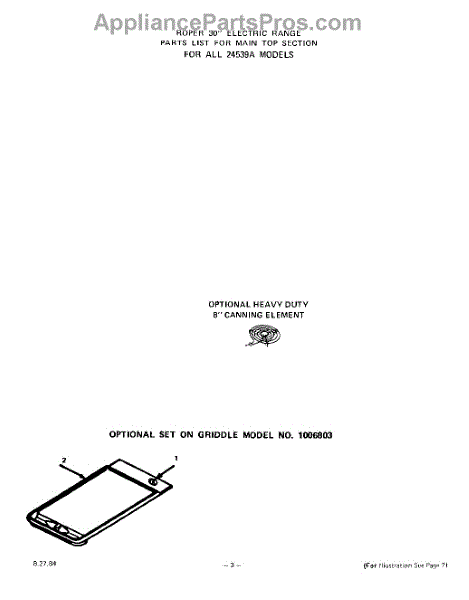 Parts for Roper 2453W9A: 04 - Heavy Duty Canning Element , Griddl Parts