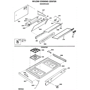 Parts for Ge JGHC56GEJ8: 02 - Hi / Low Cooking Center Parts