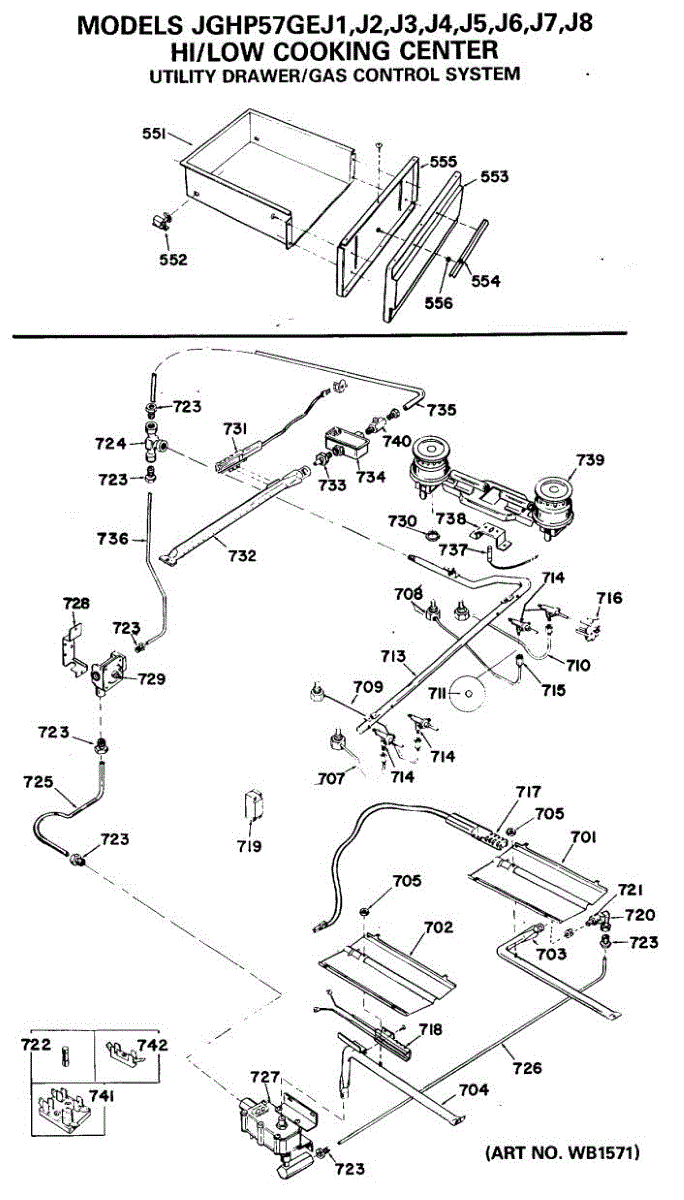 Parts for Ge JGHP57GEJ8: 05 - Hi / Low Cooking Center Parts