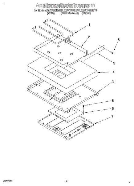 Mounting screw for securing components in compactors, cooktops, dishwashers, and ranges. Replace if screw is stripped, missing, or damaged.