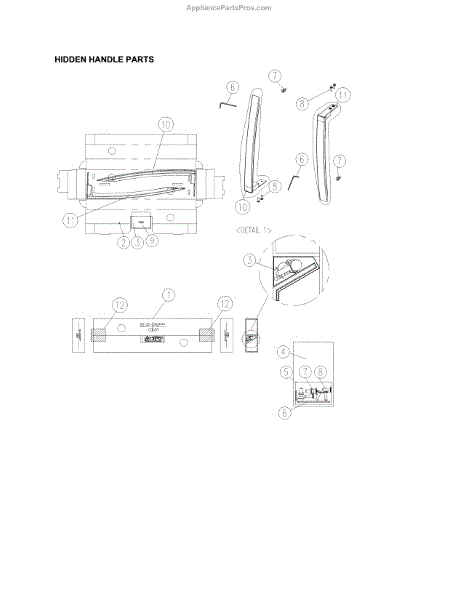 Parts for Kenmore 111.60512910 (11160512910, 111 60512910): Hidden Handle Parts