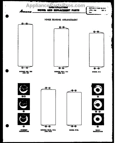 Parts for Amana D25: Hinge Bearing Arrangement (D13) (D13l) (Fs16) (Fs16l) (D16) (D16l) (S16) (S16l) (D20) (S20) (S25) Parts