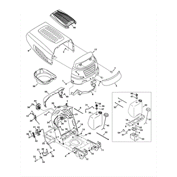 Replacement fuel cap for lawn tractors and riding mowers. Secures the fuel tank opening to prevent spills and debris entry. Order if cracked or missing.