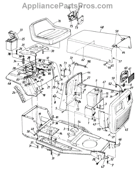 Parts for Mtd 134Y472F000 / 1994: Hood Assembly / Fuel Tank / Battery / Fender, Rear Parts