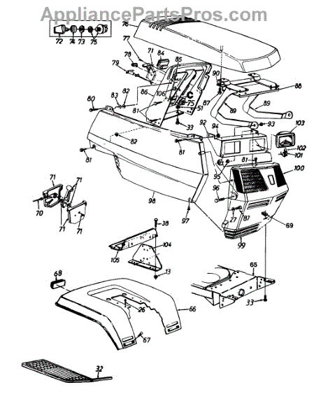 Parts for Yard-Man 1362694G401 / 1996: Hood Assembly Parts
