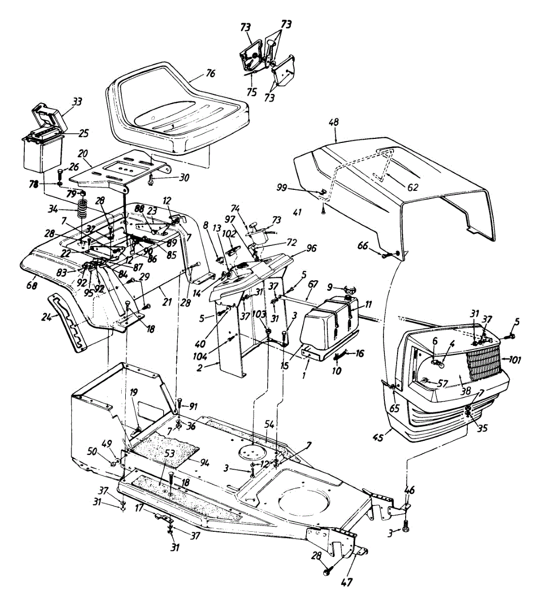 Parts for Turf Pro 134Y450F009 / 1994: Hood Assembly / Seat / Battery / Fuel Tank Parts