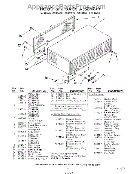 Parts for Whirlpool CCH9AEK: 09 - Hood And Back , Lit / Optional Parts