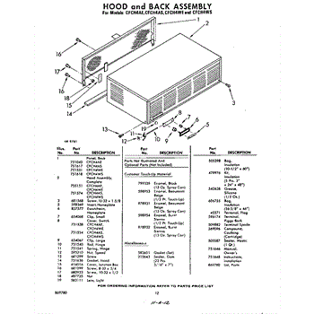 Parts for Whirlpool CFCH4AE: 12 - Hood And Back, Lit / Optional Parts