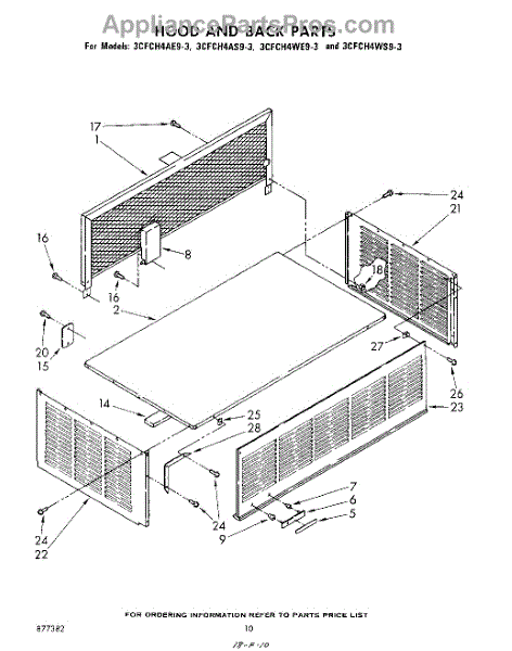 Parts for Whirlpool 3CFCH4WS93: 10 - Hood And Back Parts