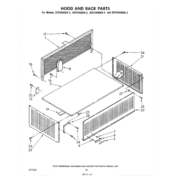 Parts for Whirlpool 3CFCHWE93: 10 - Hood And Back Parts