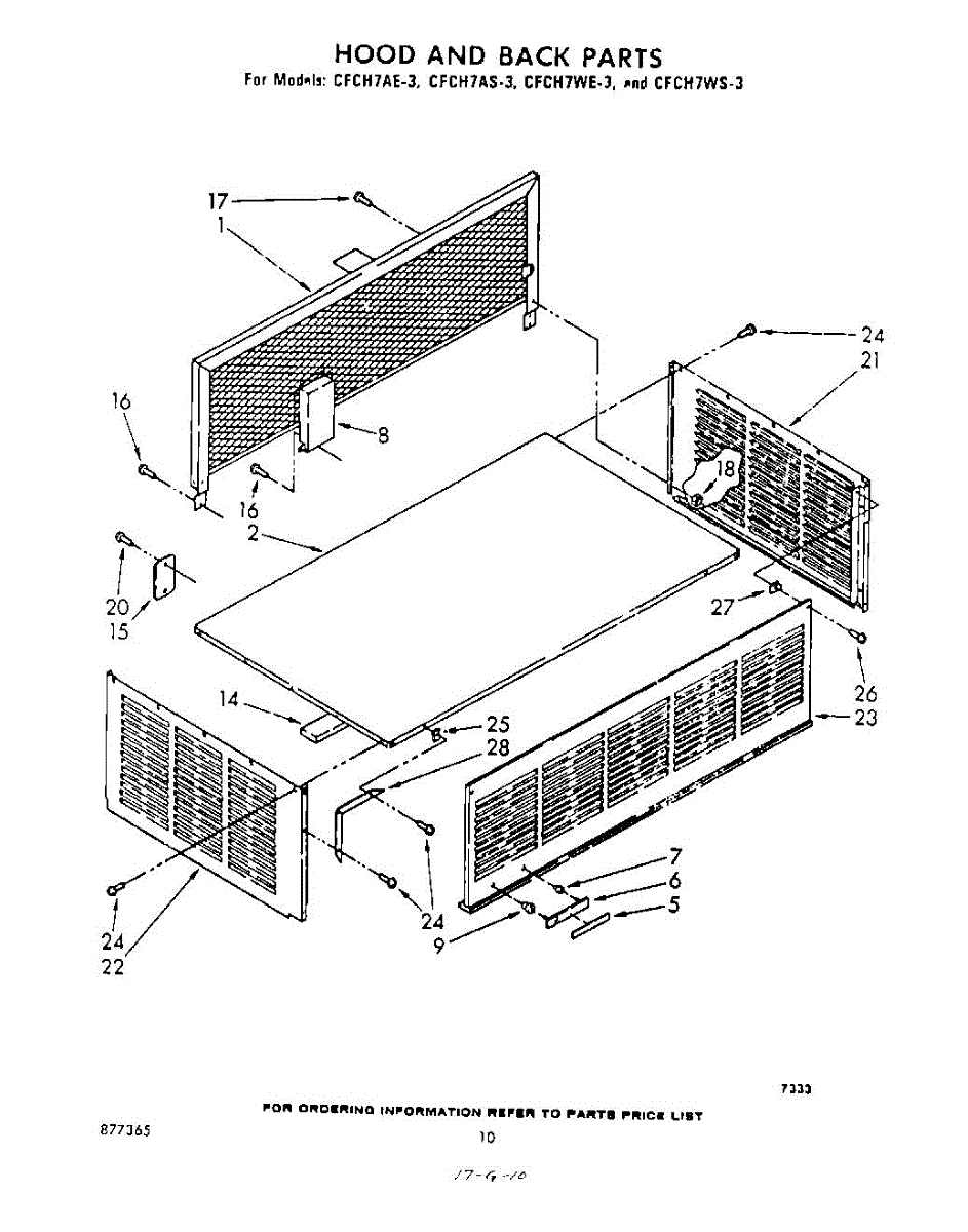 Parts for Whirlpool CFCH7AS3: 10 - Hood And Back Parts