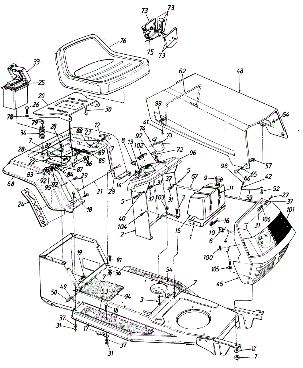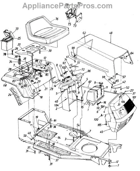 Parts for Mtd 135C451E000 / 1995: Hood / Battery / Fender / Dash Panel / Fuel Tank / Grille Parts