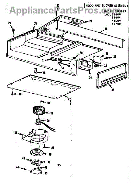 Parts for Kenmore 103.54600 (10354600, 103 54600): Hood And Blower Assembly Parts