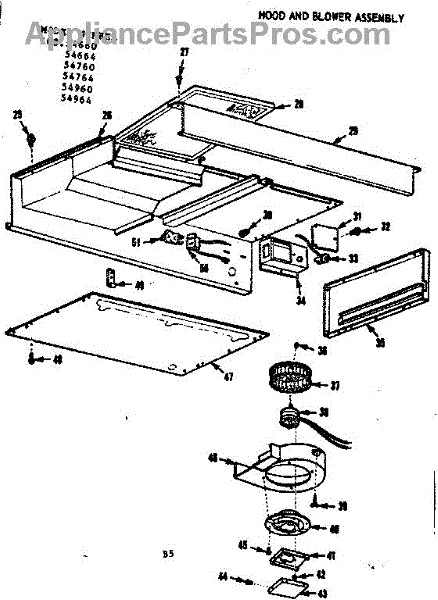 Parts for Kenmore 103.54664 (10354664, 103 54664): Hood And Blower Assembly Parts