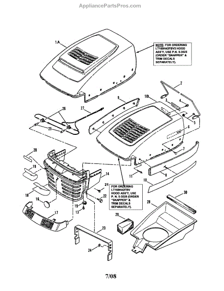 Parts for Snapper LT160H42FBV: Hood / Bumper / Headlight Parts