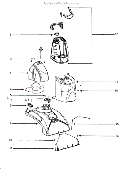 Parts for Eureka 2442B: Hood And Dispensing Tank Parts