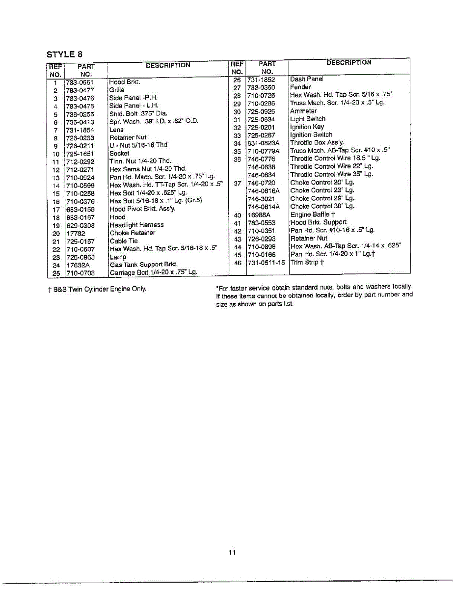 Parts for Mtd 13AU694H062: Hood / Fender / Panels / Lens-Style 8 Page 2 Parts