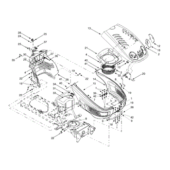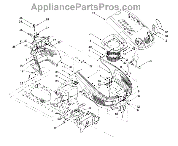 Hex screw secures internal components in lawn tractors and outdoor power equipment. Replace if damaged, stripped, missing, or loose during maintenance.