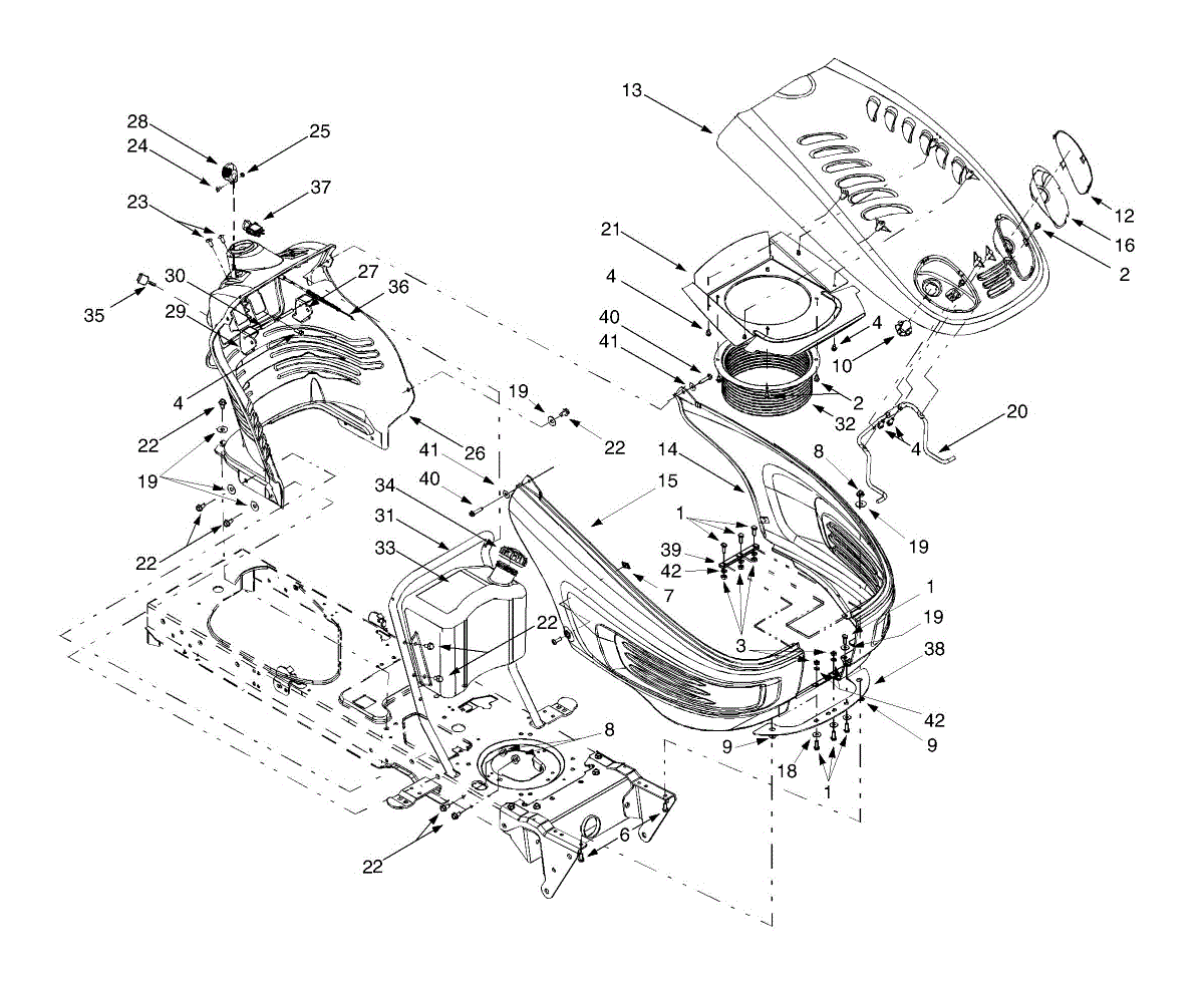 Truss head screw for lawn tractors and riding mowers. Secures covers, panels, and components. Replace if stripped, rusted, or missing.
