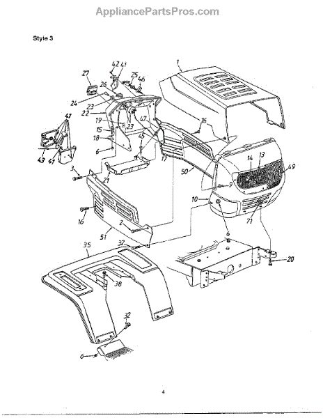 Parts for Mtd 690 THRU 699: Hood / Grille / Side Panels / Dash-Style 3 Parts
