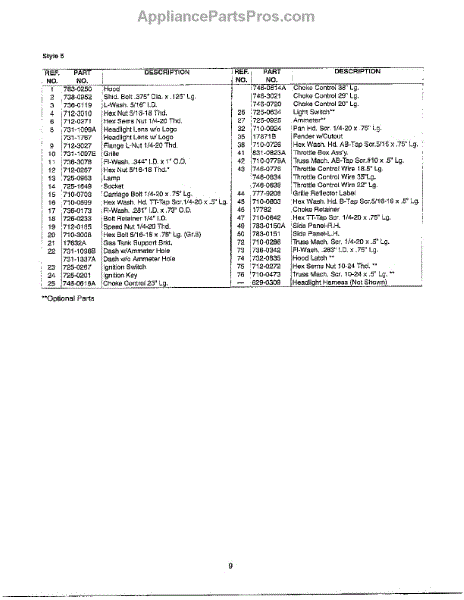 Parts for Mtd 13AU694H062: Hood / Grille / Side Panels / Dash-Style 4 Page 2 Parts
