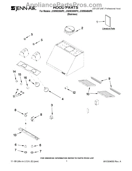 Parts for Maytag JXW9030WP0: 01 - Hood Parts
