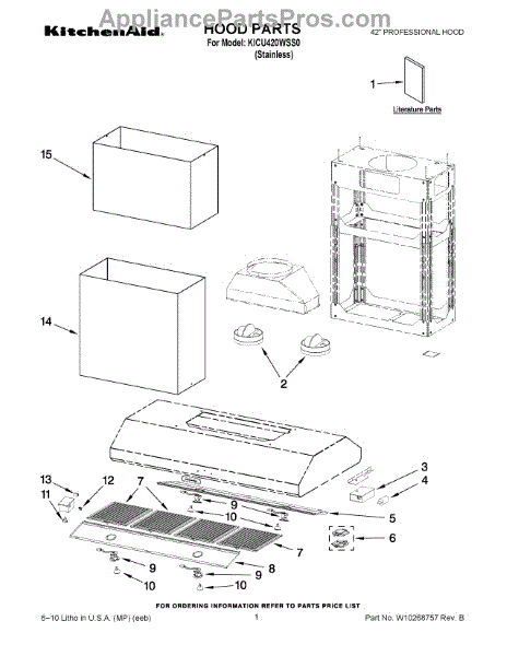 Parts for Kitchenaid KICU420WSS0: 01 - Hood Parts