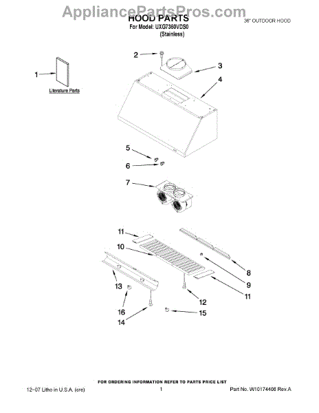 Parts for Whirlpool UXG7360VDS0: 01 - Hood Parts