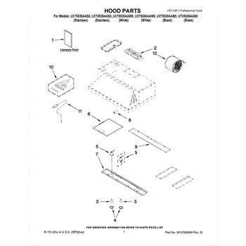 Parts for Whirlpool UXT5530AAS0: 01 - Hood Parts