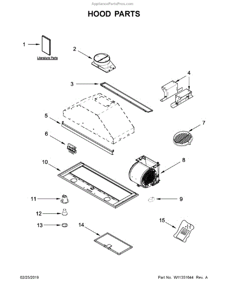 This hood damper mounts at the exhaust outlet to let cooking air exit while blocking backdrafts when the fan is off. Replacing a worn damper restores proper airflow and helps eliminate rattling or sticking during vent operation.