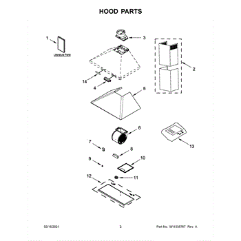 The Chimney Duct Assembly is an OEM part for Whirlpool range vent hoods. It is designed to provide a connection between the vent hood and the exterior ventilation system for airflow and removal of cooking odors and smoke.