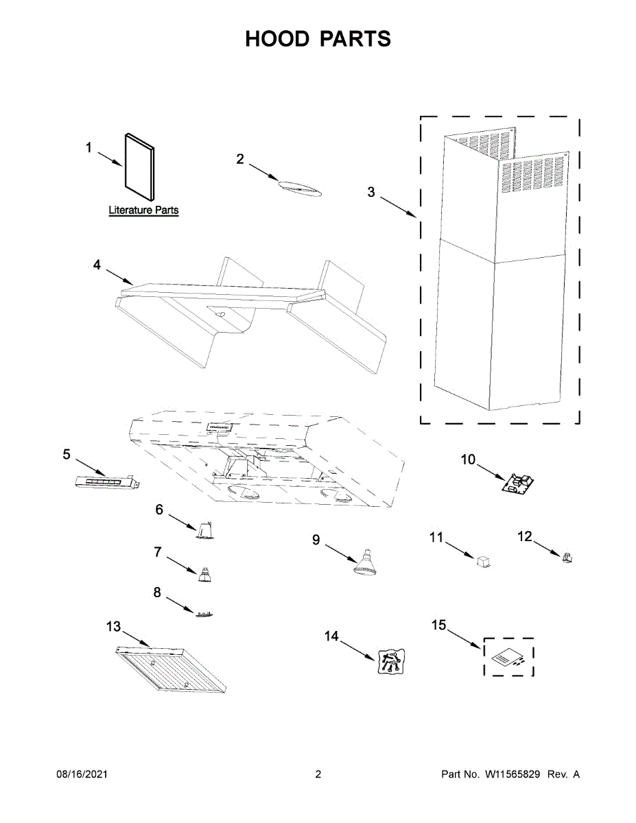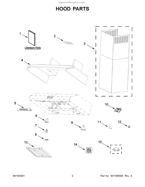 Decorative metal cover that conceals the vent duct above your range hood. Replace if cracked, dented, discolored, or missing to restore a finished look.