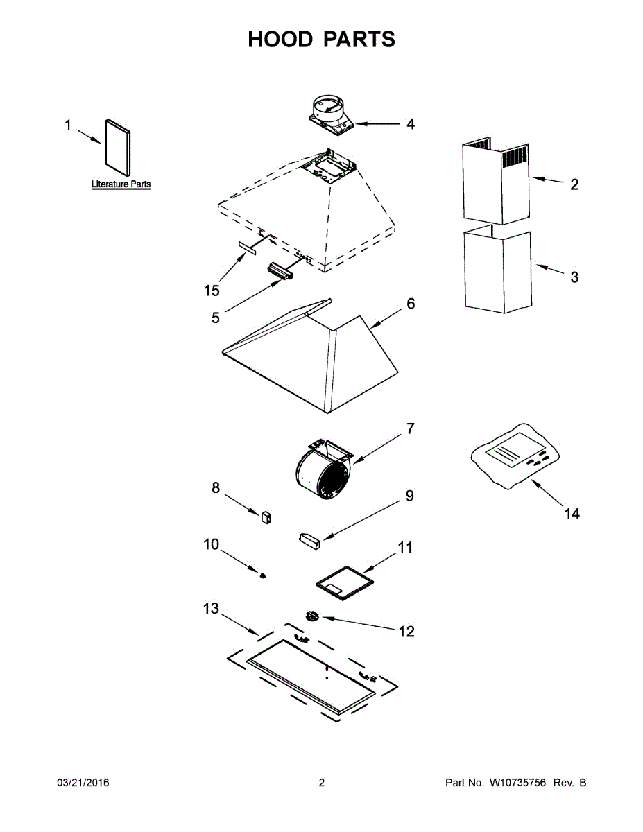 Base cover panel for range hoods. Installs at the bottom housing to conceal internal components. Replace if cracked, discolored, or missing.