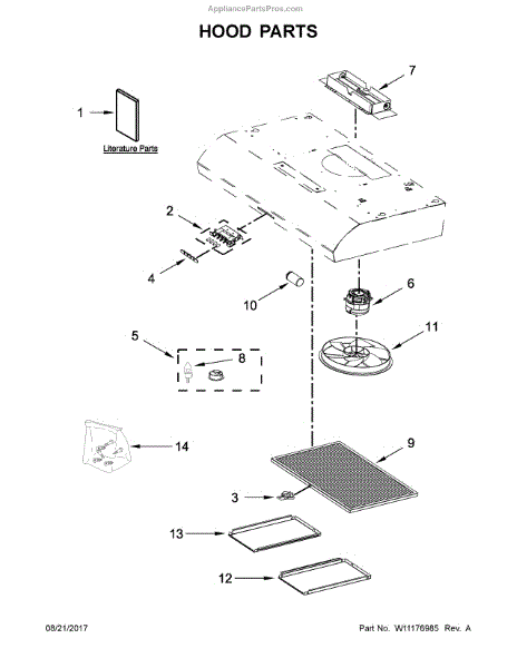 This hood damper is the backdraft flap in the exhaust outlet. It opens when the blower runs to vent air outside and closes when off to help block outside drafts, odors, and pests from entering.