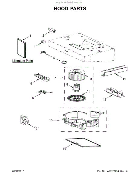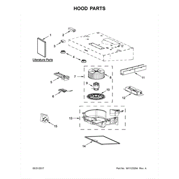 This hood damper is the backdraft flap in the exhaust outlet. It opens when the blower runs to vent air outside and closes when off to help block outside drafts, odors, and pests from entering.