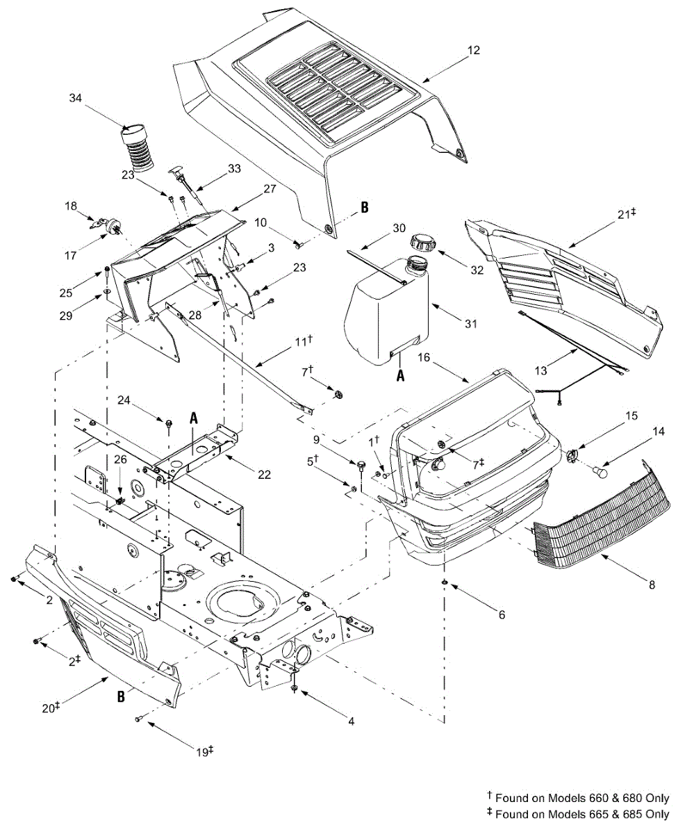 Replacement gas tank for lawn tractors and riding mowers. Installs on the frame to hold fuel. Needed when original tank is cracked, leaking, or damaged.
