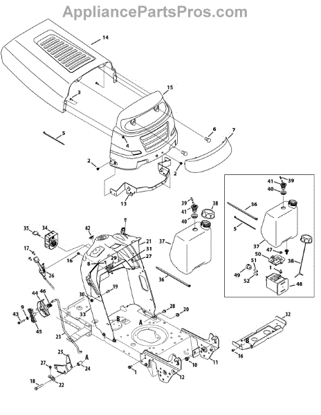 This fuel tank assembly is a genuine Husqvarna part, sold individually. This fuel tank assembly can be used as a replacement part for a lawnmower. The fuel tank assembly comes with the fuel tank as well as all of the necessary fastening components required to install the fuel tank or to replace a broken fuel tank. This fuel tank stores fuel while connecting to the fuel line so that the fuel can be fed into the engine.The fuel tank might have to be replaced if it is leaking or cannot store fuel effectively. This could occur as a result of puncturing, tearing, or erosion to the material of the fuel tank. If this occurs, the component should be removed and replaced by this genuine OEM replacement part. Always remember to wear work gloves as a safety precaution while repairing or replacing parts within an outdoor appliance. This is an OEM part sourced directly from the manufacturer. It is sold individually. This Fuel tank assembly is compatible with the following outdoor appliance brands: MTD, Craftsman, Troy-Bilt, Murray, Huskee, Bolens, Yard Man, and Yard Machines.