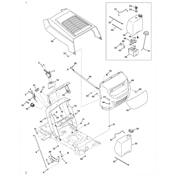 Replacement gas tank for lawn tractors and riding mowers. Installs on the frame to hold fuel. Needed when original tank is cracked, leaking, or damaged.