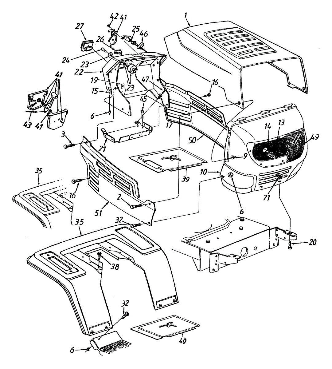 Parts for Yard Machines 13A8673G009 / 2001: Hood Style "3" Parts