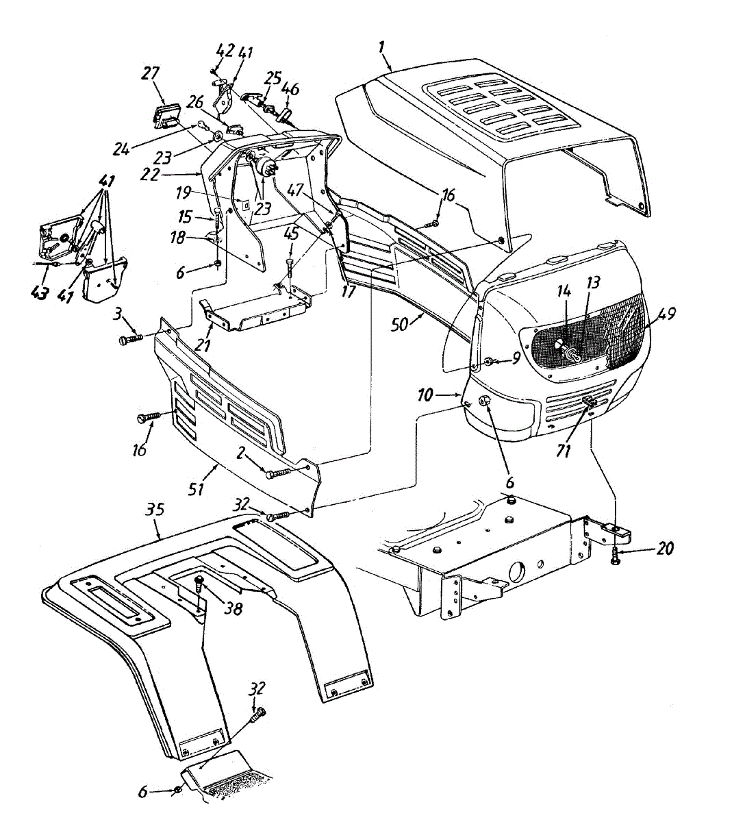 Parts for Yard Machines 13AN693G019 / 2000: Hood Style 3 Parts