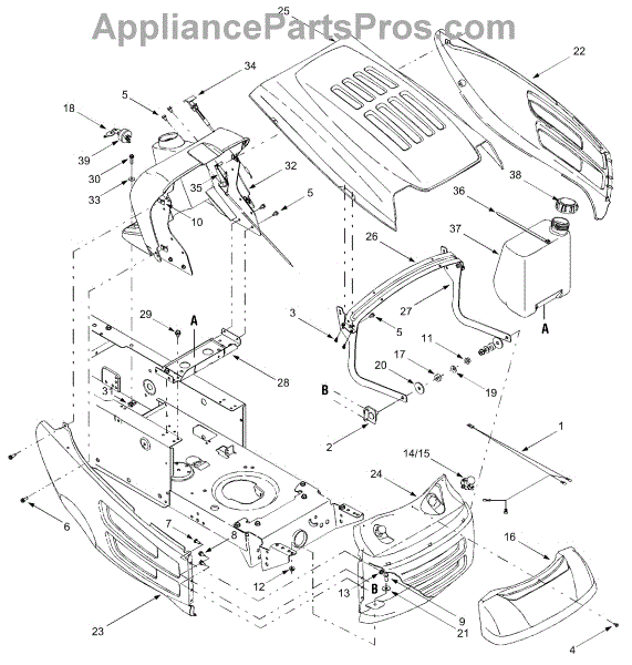 Replace your lawn tractor's front grille if the original is cracked, broken, or missing. This cosmetic cover protects the engine compartment opening.