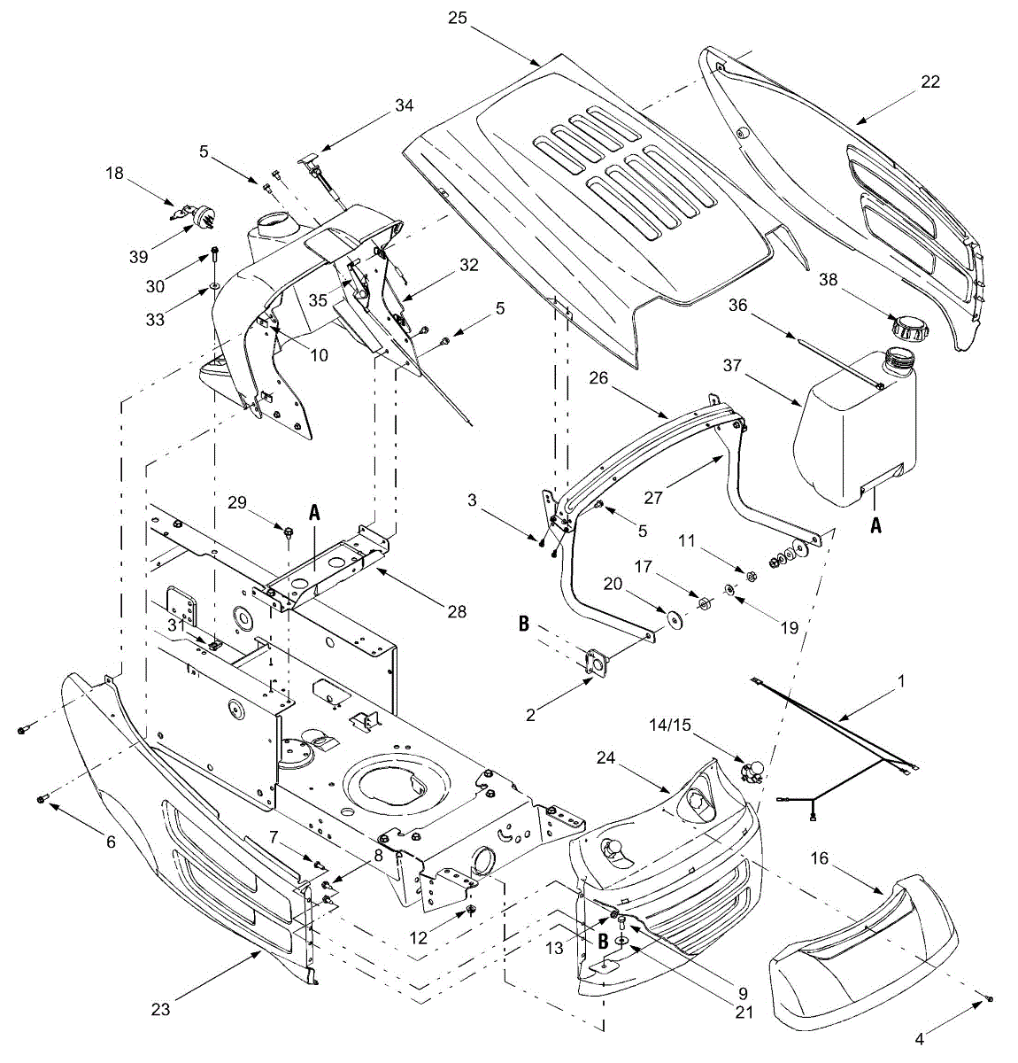 Replace your lawn tractor's front grille if the original is cracked, broken, or missing. This cosmetic cover protects the engine compartment opening.