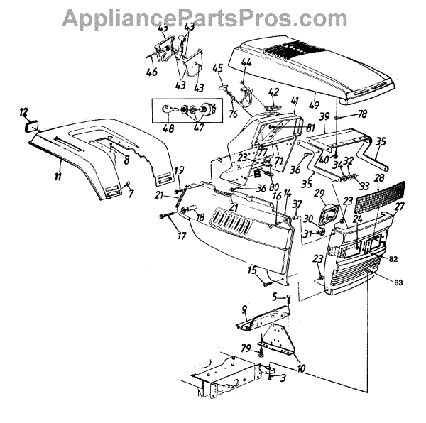 Parts for Yard Machines 13AJ699H062 / 1998: Hood (Style 9) Parts
